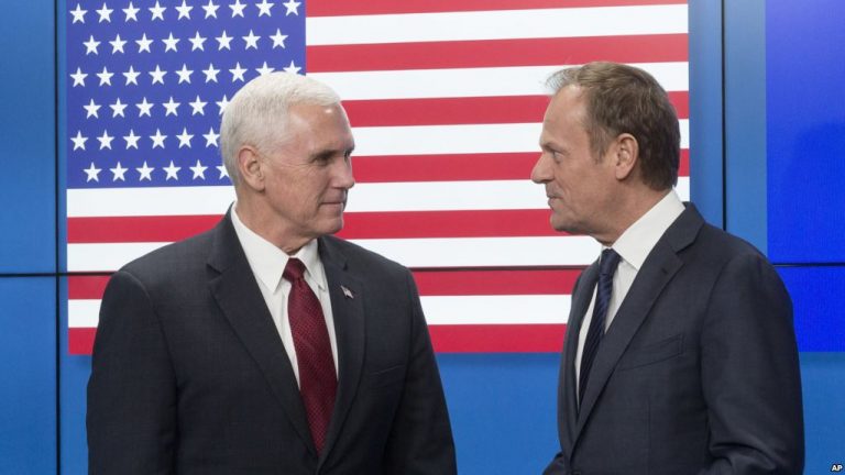“Hoy tengo el privilegio en nombre del presidente Trump de expresar el fuerte compromiso de Estados Unidos para continuar la cooperación y la sociedad con la Unión Europea”, dijo Pence en un comunicado divulgado luego de la reunión con Tusk.